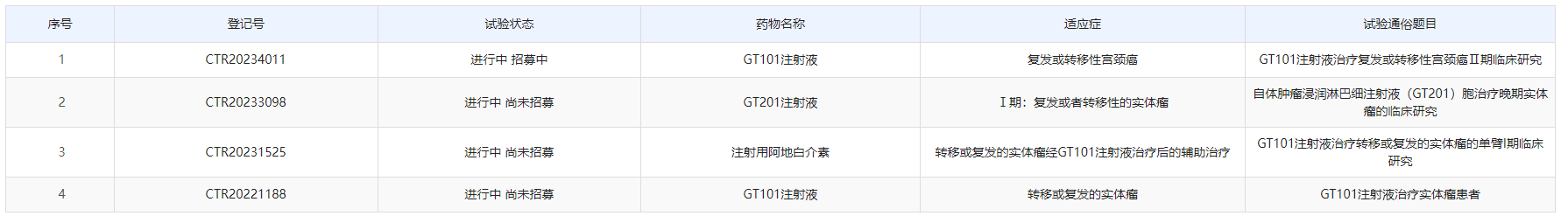 由沙砾生物自主研发生产的TIL产品GT101注射液,是中国首个进入临床的TIL产品。基于1期临床试验的临床效果,GT101目前在中国正式开启关键2期临床研究,适应症为复发或转移性宫颈癌。这是国内目前第一个也是唯一一个进入关键临床阶段的TIL产品。