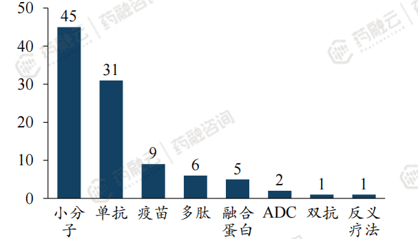 小分子创新药仍然是药物开发的主力。近年来,全球小分子创新药在获批数量和销售额上持续占据主导地位。据摩熵咨询《2024年十大重磅小分子药物》报告统计,2023年美国FDA批准的新药中,小分子药物占比约55%,且在全球药品销售额TOP100榜单中,小分子药物以45款的数量和约1758.71亿美元的销售额位居榜首,充分证明了其市场影响力和患者需求。