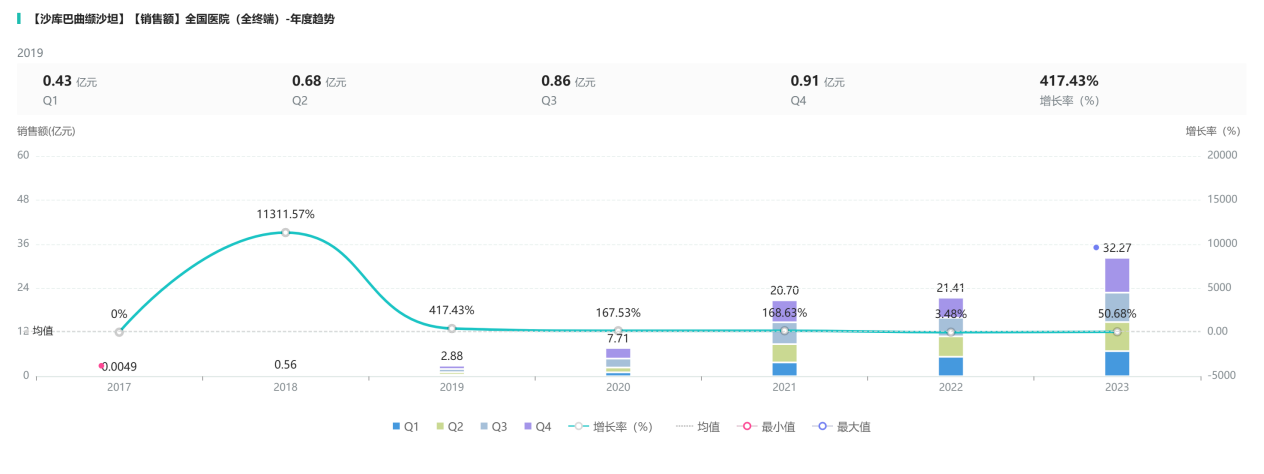 图7.沙库巴曲缬沙坦院端销售情况