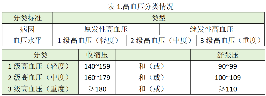 高血压是一种常见的慢性病,通常指动脉血压持续升高的情况。正常情况下,血液被心脏泵送到全身各部位,血液在动脉内的压力称为血压。高血压意味着心脏需要比正常更大的压力来将血液泵送到身体各部位,长期高血压不单会引起众多疾病的合并症,同时也是许多疾病的潜在危险因素,并影响相关预后。指南按不同的分类标准将高血压分为多种类型,如表1。
