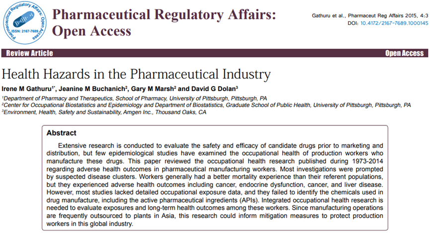 随着制药工业的全球化的,制药生产操作常被外包给亚洲的工厂,这使得在全球范围内保护制药工人的健康成为了一个重要的问题。