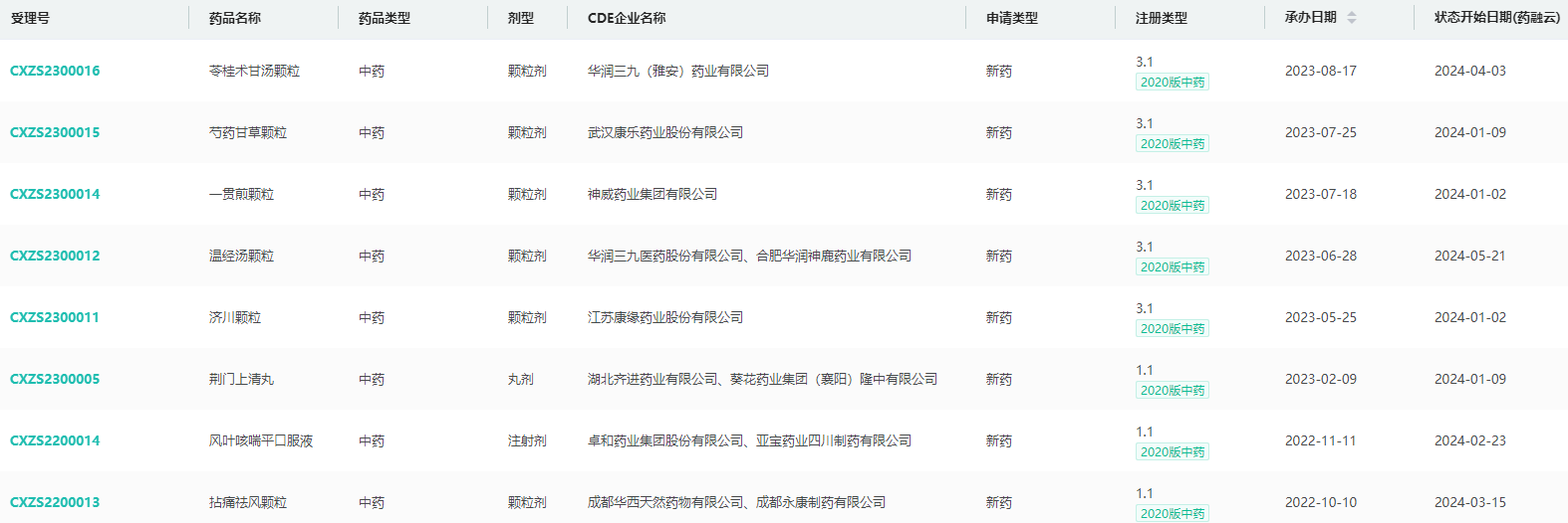 2024年上半年国内获批的中药新药