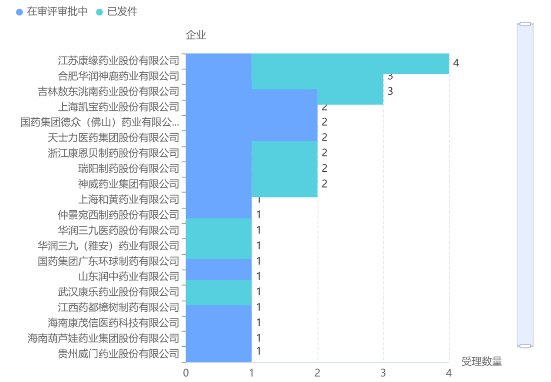 各大药企正积极布局多个治疗领域的创新药物,以期在激烈的市场竞争中占据一席之地。其中,康缘药业表现尤为突出,已提交了4项注册申请,紧随其后的是华润神鹿药业和吉林敖东洮南药业,分别提交了3项申请。