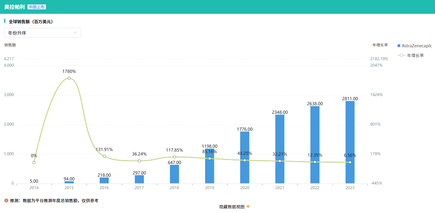 2023年Lynparza销售额为28.11亿美元,2024上半年销售额为1.45亿美元,同比增长9%。预测2028年该药物销售额34.51亿美元。