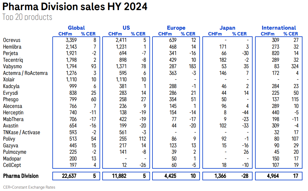 Hemlibra自上市以来,年复合增速超300%,并于2020年突破20亿美元销售大关,成为重磅品种。Hemlibra2023年销售额41.47亿瑞士法郎(约45.75亿美元),同比增长16%。2024年依然保持着增长趋势,2024上半年销售额为21.43亿瑞士法郎(约25.29亿美元)。预计2028年销售额62.03亿美元。