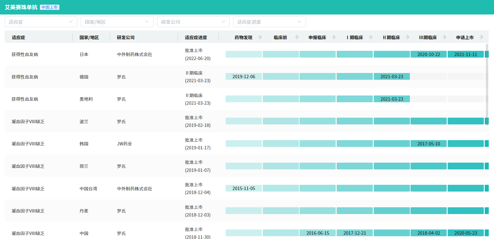 想要解锁更多药物研发信息吗?查询药融云数据库(vip.pharnexcloud.com/?zmt-mhwz)掌握药物基本信息、市场竞争格局、销售情况与各维度分析、药企研发进展、临床试验情况、申报审批情况、各国上市情况、最新市场动态、市场规模与前景等,以及帮助企业抉择可否投入时提供数据参考!注册立享15天免费试用!