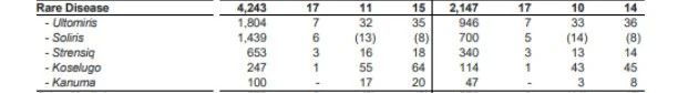 根据2023年的数据,Ultomiris的销售额达到了29.65亿美元,2024上半年销售额18亿美元,同比增长32%。预计2028年销售额51.84亿美元。