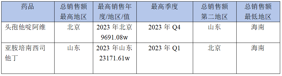 表2. 两种抗感染药2021-2023年部分区域销售亮点总结