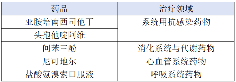 通过对集采药品的分析可以了解到:集采范围不仅涵盖了肿瘤、感染、心血管疾病、胃肠道疾病、呼吸系统疾病等常见病用药,易短缺药与急抢救药等重点药品也有所涉及。这些疾病范围的药品中选,是依据市场需求动态跟进后调整扩面的生动体现。根据近期国家医保局印发的文件所示,集采覆盖范围将持续扩大。故笔者预测药品有5种,均为化药,涵盖了4种治疗领域,详见下表: