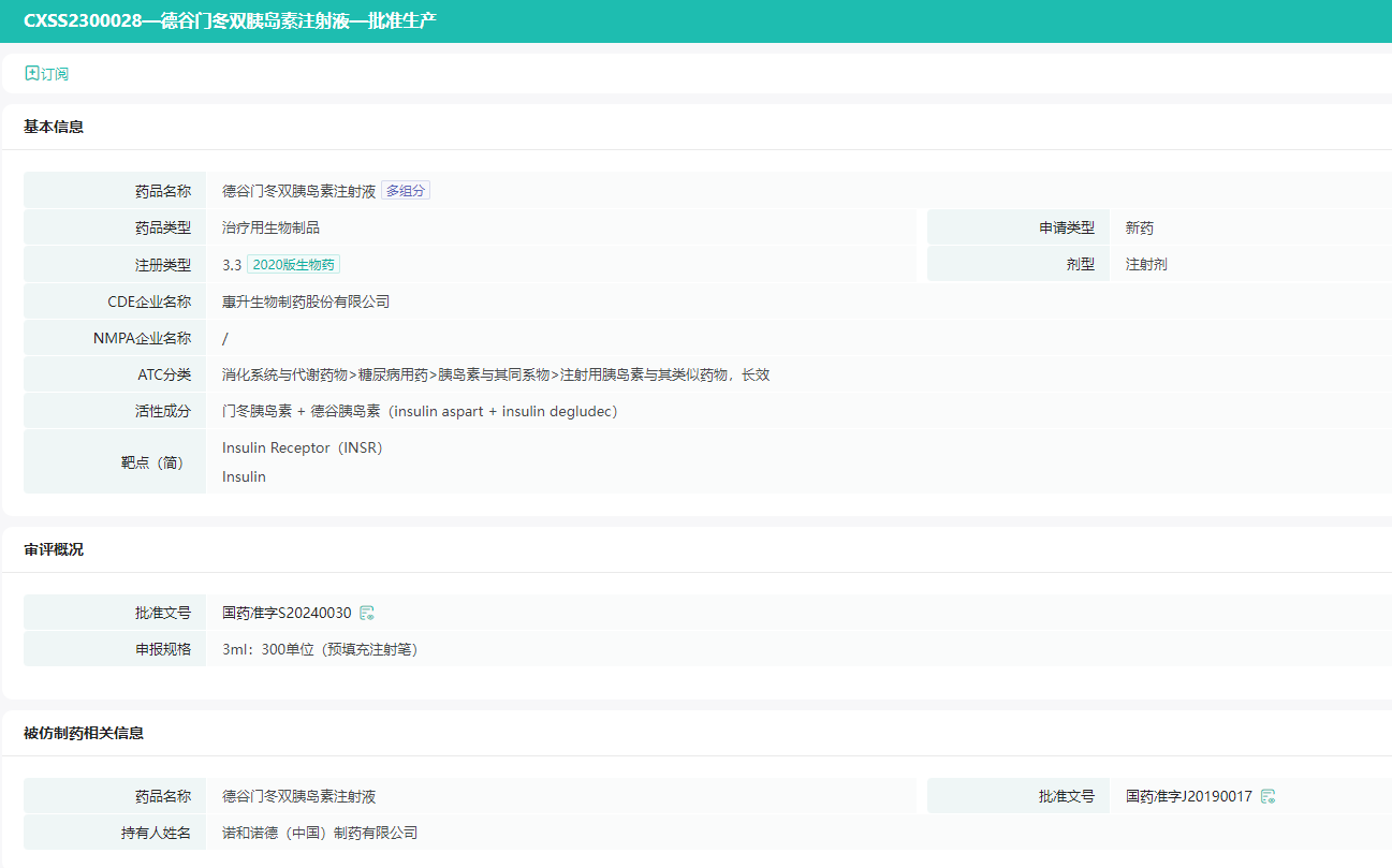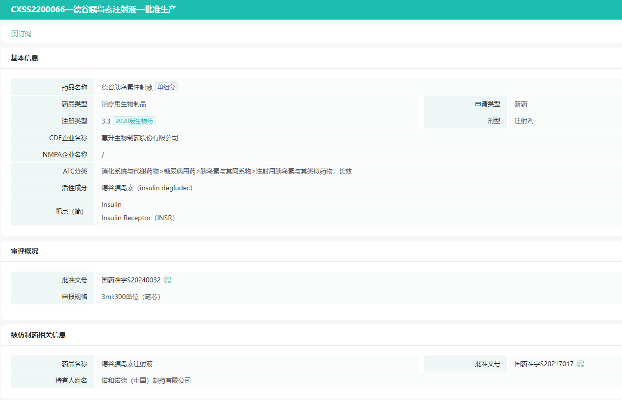 2. 惠升生物的德谷胰岛素生物类似药获批上市