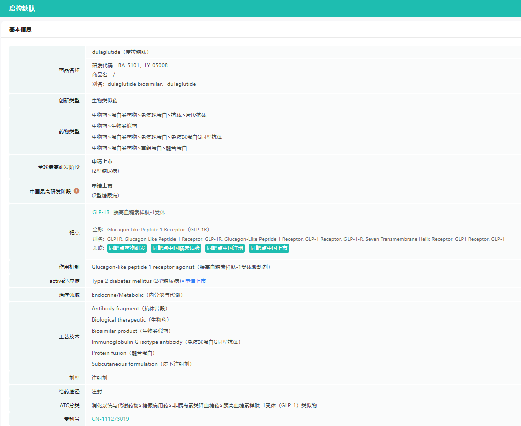 1. 博安生物度拉糖肽注射液在美国获批临床