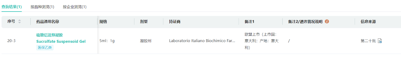 硫糖铝混悬凝胶这个产品还是有希望的,具备参比资格的Laboratorio公司的硫糖铝口服凝胶在申报国内上市了,好消息是参比可及了,坏消息是得跟原研争市场了。