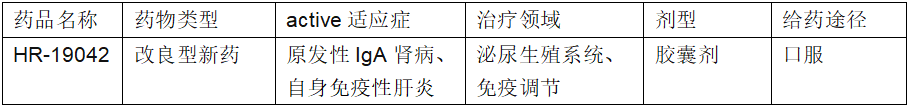 突破性治疗品种为适用于治疗严重或危及生命的疾病且有足够证据表明初步临床证据显示出显著优于现有疗法的药品。HR19042胶囊是由恒瑞医药自主研发,同类产品中首个获批该适应症的改良型新药,为口服肠溶缓释胶囊,可选择性发挥肝脏抗炎作用。通过摩熵医药(原药融云)数据库查询到HR19042胶囊相关信息如下表所示:
