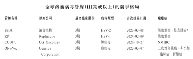 三维生物作为国内先行者,已成功将产品推向市场。而在最具看点的临床后期阶段,滨会生物正和Replimune、CG Oncology等共同争夺下一张上市的“门票”。