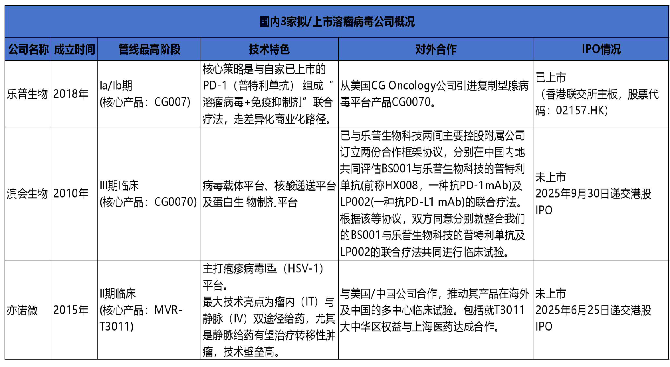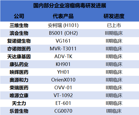 除了我们重点关注的亦诺微、滨会生物与乐普生物,当前的国产溶瘤病毒赛道已然呈现出百花齐放的格局。