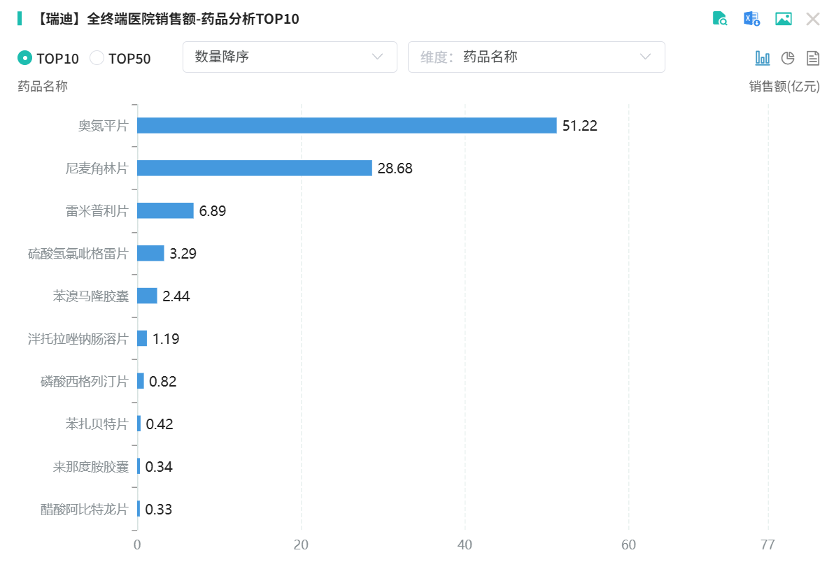 奥氮平片的成功为瑞迪博士打开了医院渠道,也带动了心血管、消化系统等药物布局,其中表现最出色的是尼麦角林片,其销售额甚至超越了原研,累计突破28亿。