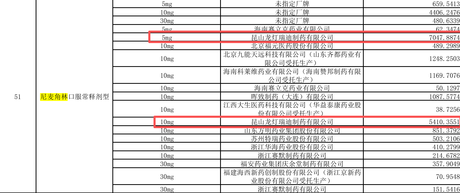 其中最核心的产品就是尼麦角林片。在这个品种上,昆山龙灯瑞迪非常强势,不仅是当前国内市场份额最大的企业,同时也是此次集采收获报量最多的企业,达到首年需求量50%。