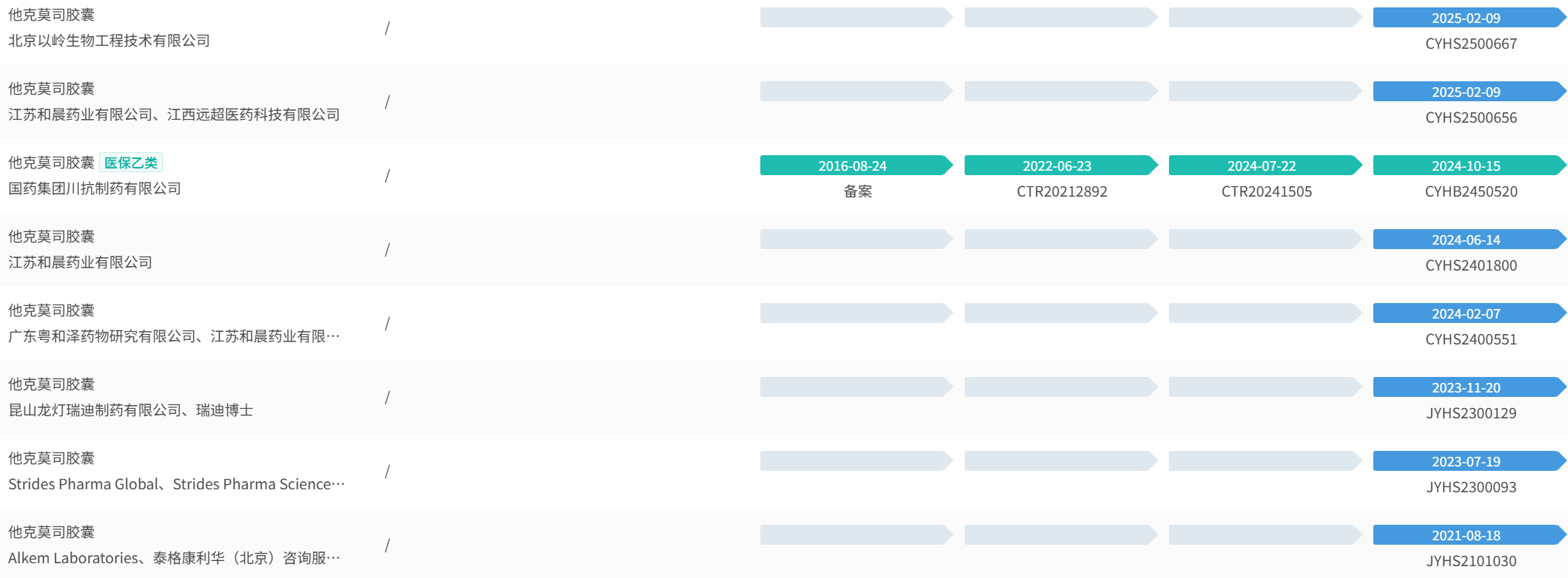 除上述几家外,目前他克莫司胶囊尚有8家企业正在走一致性评价审评流程,其中包括一家已上市的国药川抗,以及和泽两家子公司,还有三家印度企业。