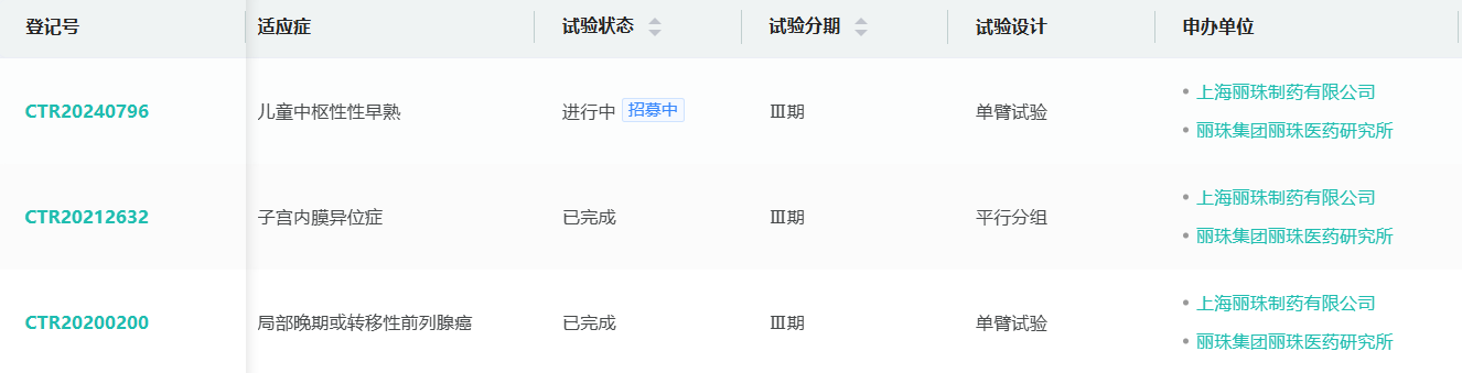11月19日,据CDE官网信息显示,齐鲁制药以4类仿制药递交的注射用醋酸曲普瑞林上市申请已获受理。