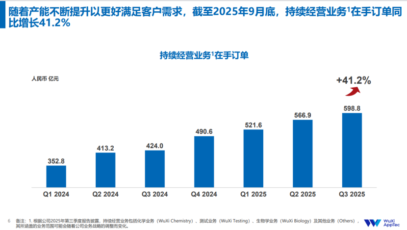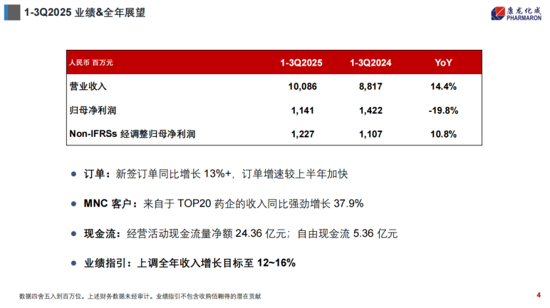 订单核心表现:2025年前三季度新签订单同比增长超过13%,其中CMC(小分子CDMO)服务板块增速约20%。
