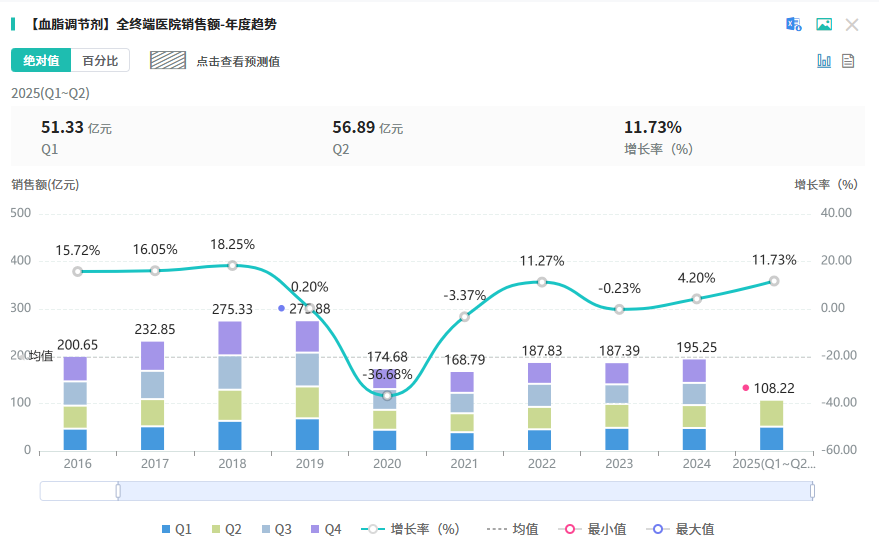 与传统他汀类相比,贝派度酸优势明显,肌肉相关不良反应极少,且作用机制互补,联合用药增效潜力巨大。据摩熵医药数据库显示,2023年,贝派度酸在全球销售额超1.2亿美元,同比增长达218.42%。高血脂,作为心血管疾病及相关死亡的“头号元凶”,其危害不容小觑。世界心脏联盟(WHF)数据显示,全球约39%的成年人胆固醇水平超标,每年因此丧生的人数以百万计。摩熵医药数据进一步揭示,2024年全终端医院市场血脂调节剂销售总额超195亿元,市场潜力巨大。