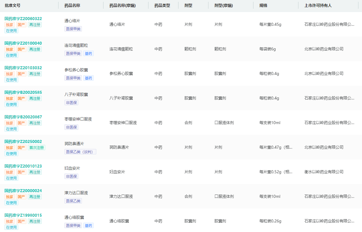 在2025H1医院终端中成药市场心脑血管疾病用药TOP20产品中,包含13个独家品种。其中,步长制药(含子公司)和以岭药业拥有的品种数量最多,各有3款产品入选:步长制药包括丹红注射液、脑心通胶囊、稳心颗粒;以岭药业包括参松养心胶囊、通心络胶囊、芪苈强心胶囊。其余独家品种还包括天士力的复方丹参滴丸、广西梧州制药的注射用血栓通等。