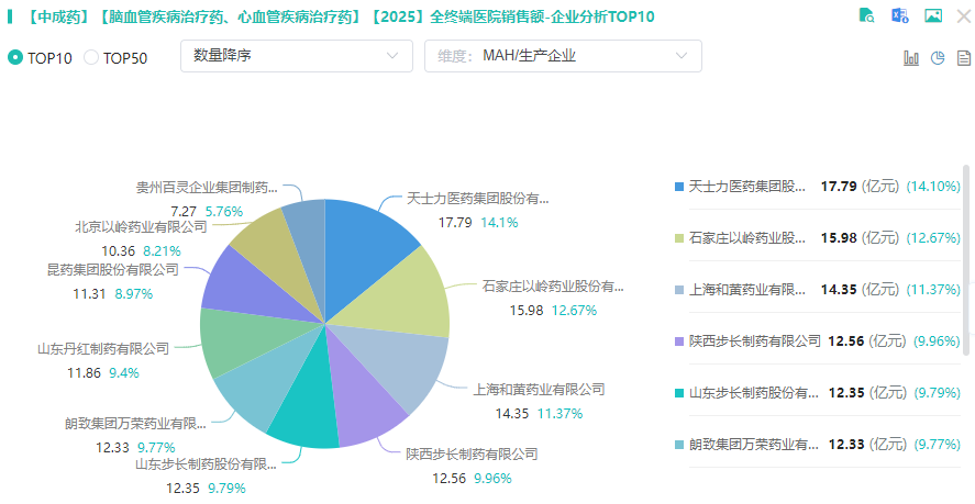 2025H1医院端中成药市场心脑血管疾病用药企业分析TOP10