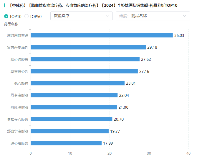 2024年医院终端中成药市场心脑血管疾病用药TOP10