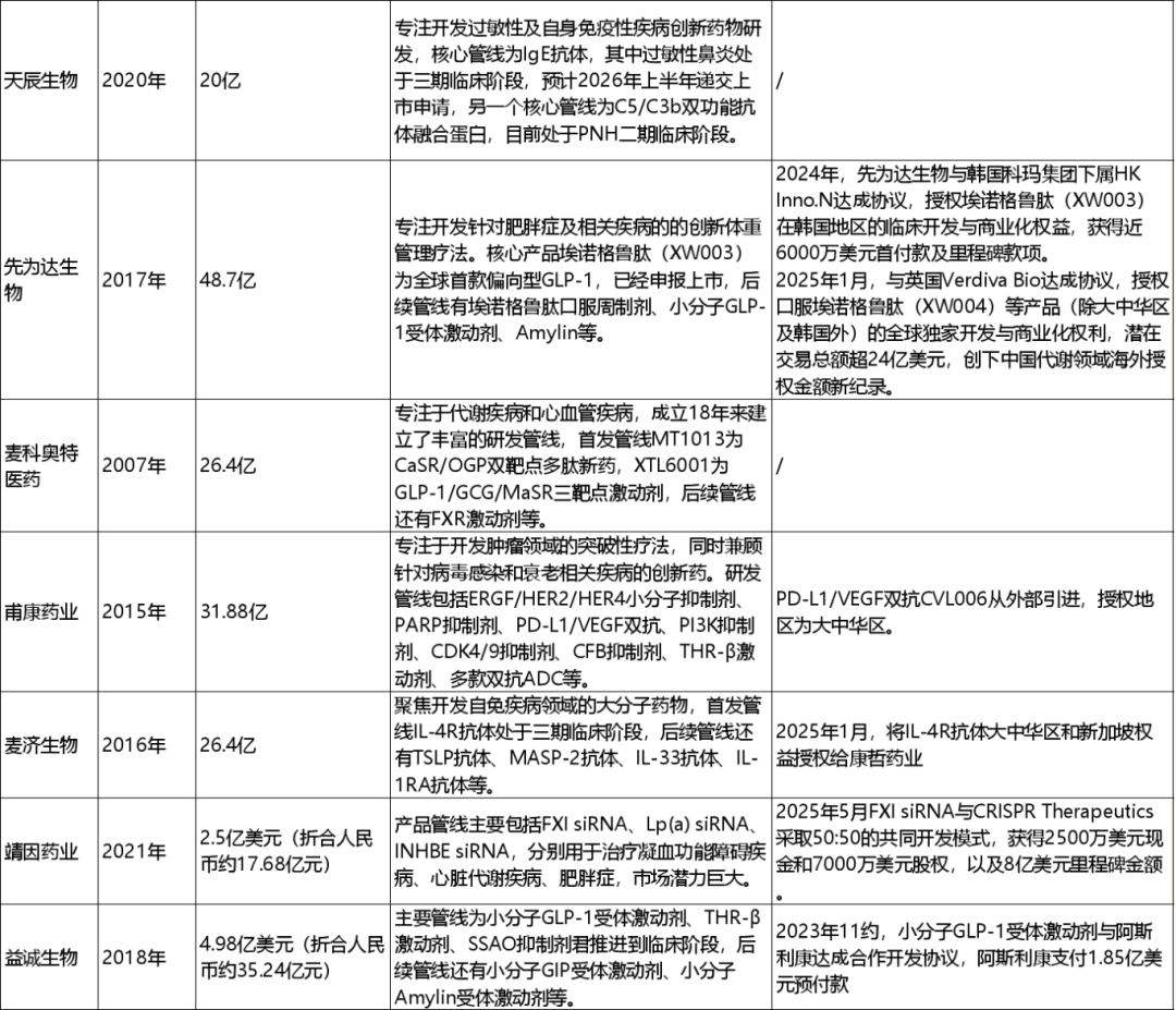 综合来看,无论是已上市的“先行者”,还是正在排队的“后续梯队”,都试图通过聚焦某个资深领域、重磅BD或押注下一代平台等方式来构建独特的投资故事。