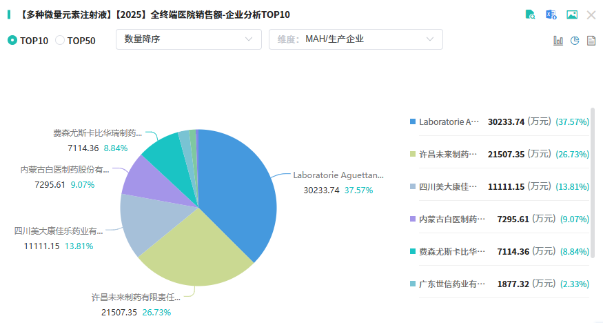 更具爆发力的是在研新剂型。多种微量元素注射液(Ⅲ)在2024年全终端医院的销售额已超千万元,2025年上半年突破500万元,同比增速高达1324.12%,成为市场中最具潜力的增长点。