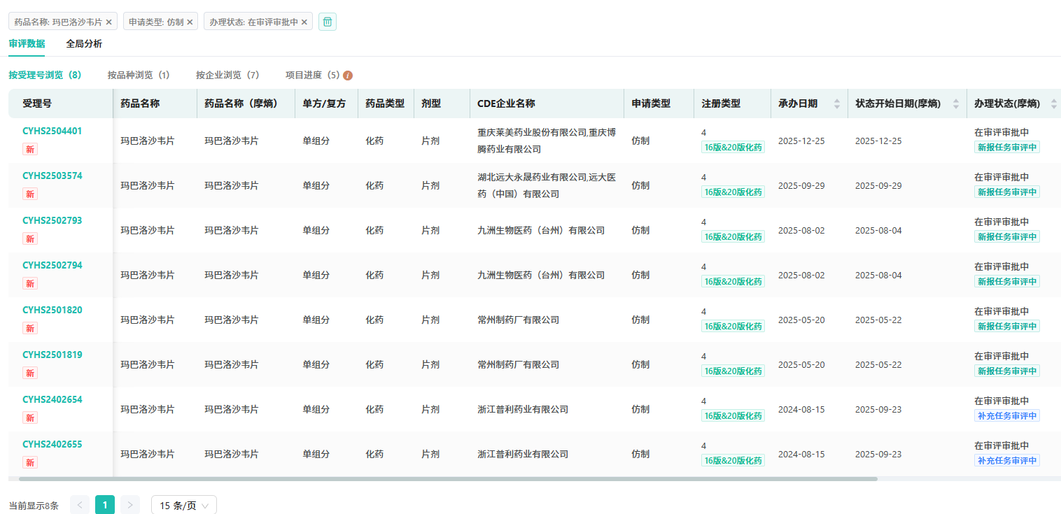 查数据,找摩熵!图源:摩熵医药中国药品审评数据库