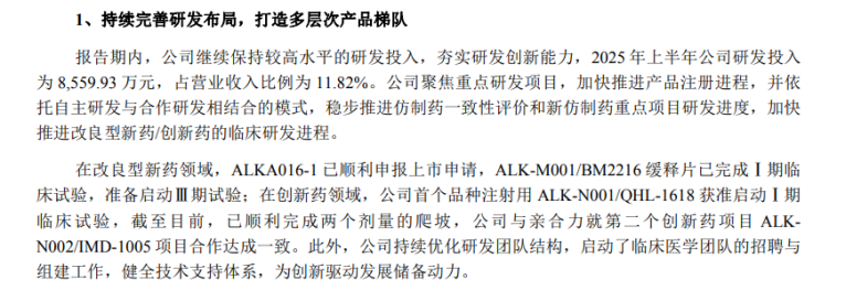 图:昂利康2025年半年度报告