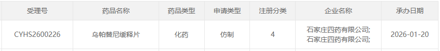 石家庄四药按4类申报的 乌帕替尼缓释片 上市申请获受理。作为口服高选择性JAK1抑制剂中增长迅猛的核心品种,这又是一块让本土药企前赴后继的“硬骨头”。