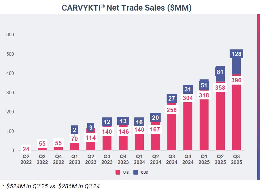 强生和传奇生物的合作模式也很成功。传奇生物负责研发,强生负责商业化推广,双方各司其职。2025年,Carvykti在欧洲、日本等主要市场都获得了医保覆盖,这对销售增长帮助很大。值得注意的是,其美国市场贡献14.92亿美元,国际市场占比提升至24%,欧洲TechLane工厂投产后有望进一步扩大全球供应。