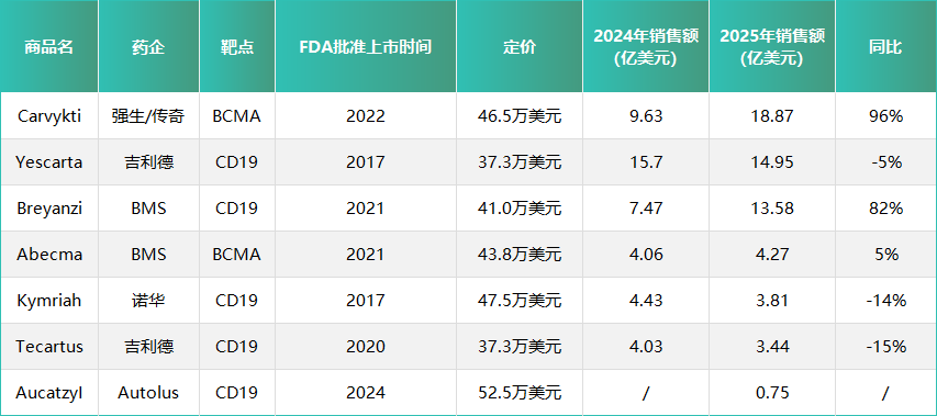 2025年的CAR-T药物市场格局,用"几家欢喜几家愁"来形容再合适不过。先看榜单: