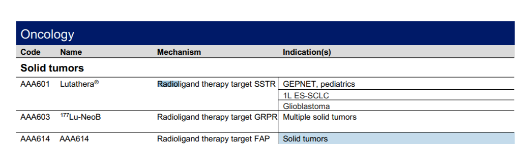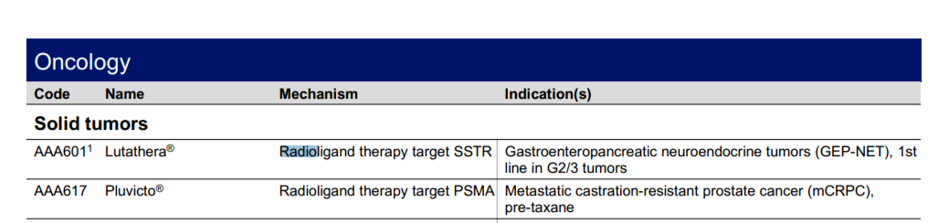 今年5月,诺华以10亿美元预付款及7.5亿美元的里程碑代价收购Mariana Oncology,加深在核药领域的护城河。此外,诺华目前在市场上有两个获批的放射性药物产品,Lutathera和Pluvicto。