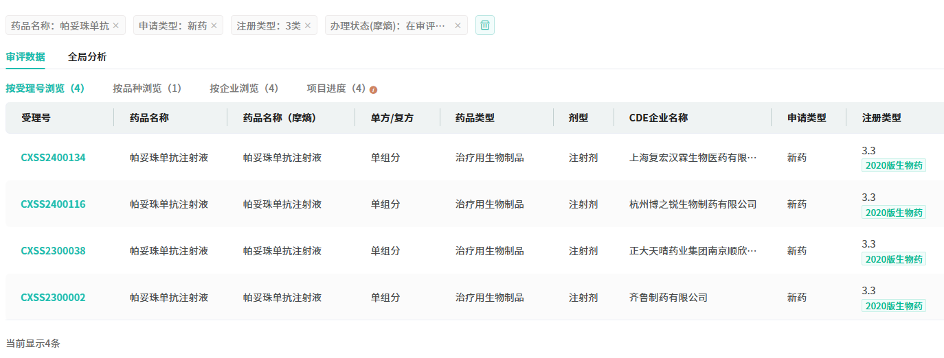 截图来源:摩熵医药(原药融云)中国药品审评数据库
