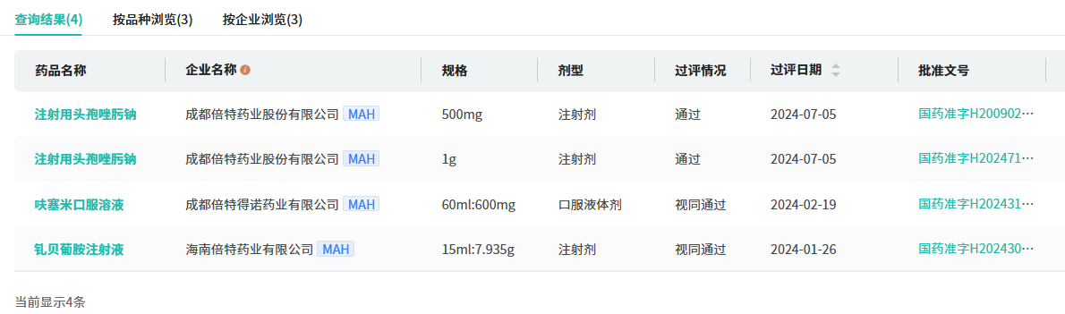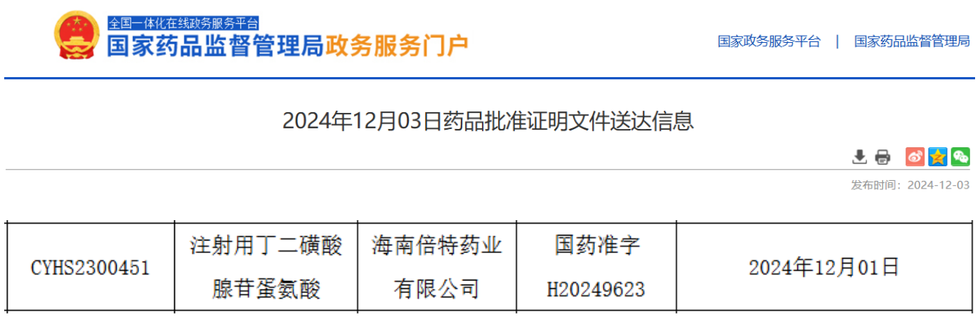 上一周(12.2-12.8),倍特药业迎来大丰收!12月2日,倍特药业(含子公司)斩获了碘佛醇注射液、尼莫地平注射液、卡络磺钠注射液以及注射用盐酸罗沙替丁醋酸酯这四大注射剂品种。次日,倍特药业其子公司海南倍特药业提交的4类仿制药注射用丁二磺酸腺苷蛋氨酸获批生产并视同过评。