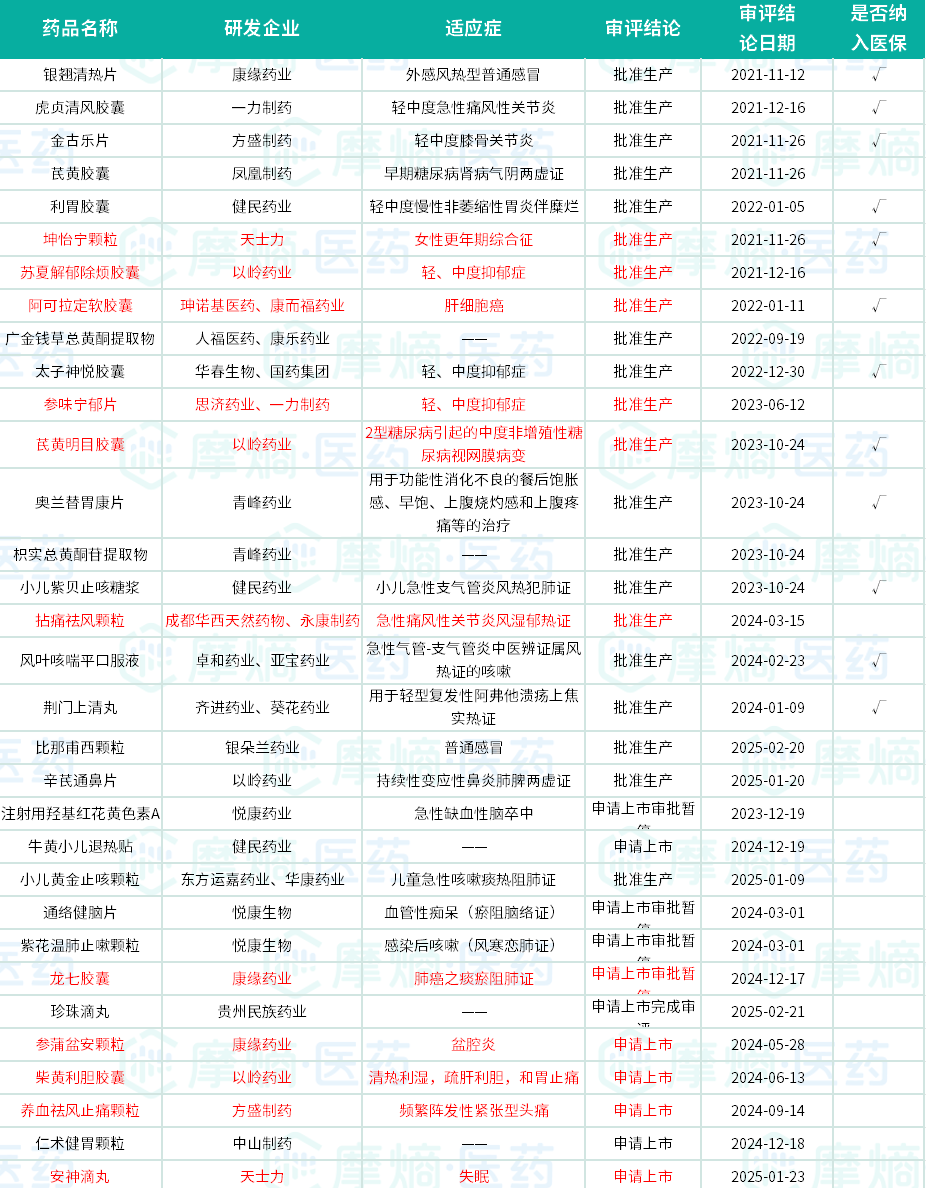 2020年以来国内获批上市或处于申报上市阶的32个中药创新药品种清单