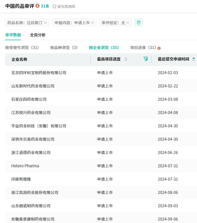 另外,已有山东新时代、石家庄四药、江苏悦兴药业、华益药业、深圳是贝美药业、浙江诺得药业等多家药企提交了比拉斯汀口服溶液上市申请,均获受理,竞争激烈。