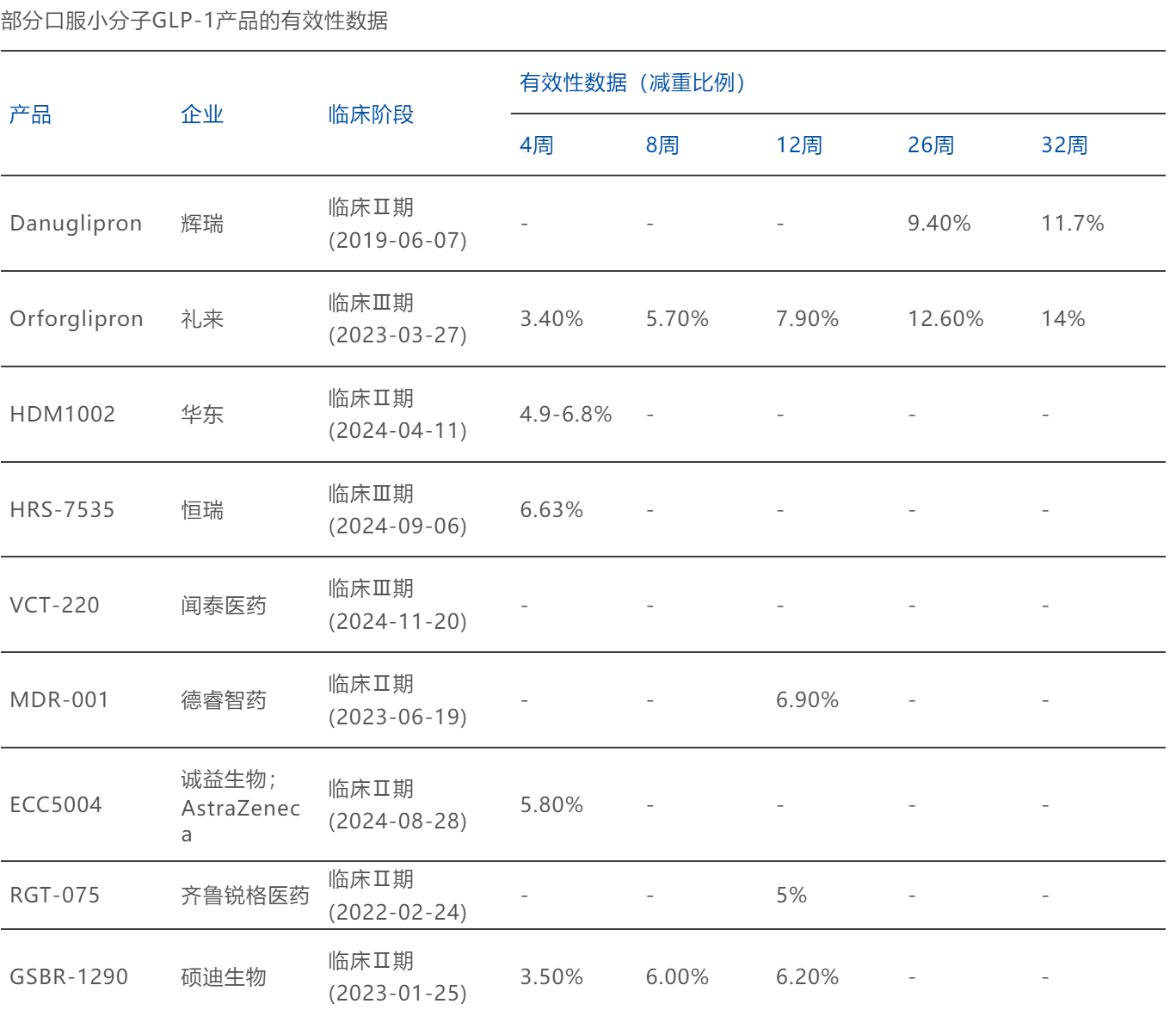 其中不乏数据优异的黑马,未来获能与礼来Orforglipron一争: