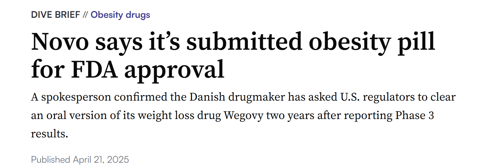 当地时间4月21日,诺和诺德宣布:已向美国FDA提交口服版GLP-1减肥药物的上市申请。