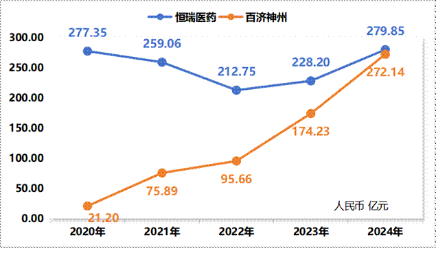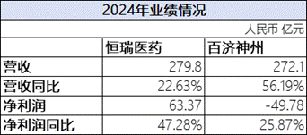 从2024年总营收来看,恒瑞医药略高于百济神州,从创新药营收总额来看,百济神州明显高于恒瑞。