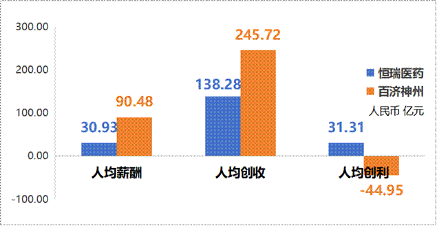 表:恒瑞医药和百济神州近5年营收