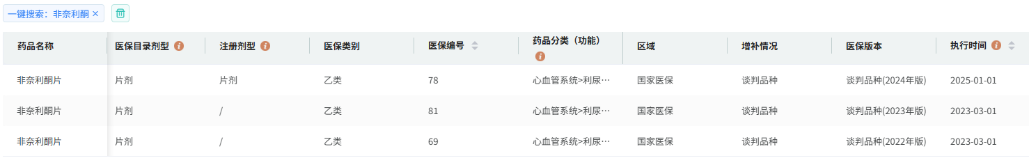 非奈利酮片在国内获批上市后,院内销售额快速攀升,目前累计销售额已突破4亿元。2023年非奈利酮被纳入医保后,销量开始大幅增长。2024年同比增长234.68%,销售额为3.22亿元。