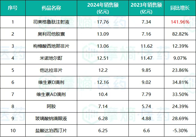 二、司美格鲁肽暴涨142%登顶,TOP10药品格局生变