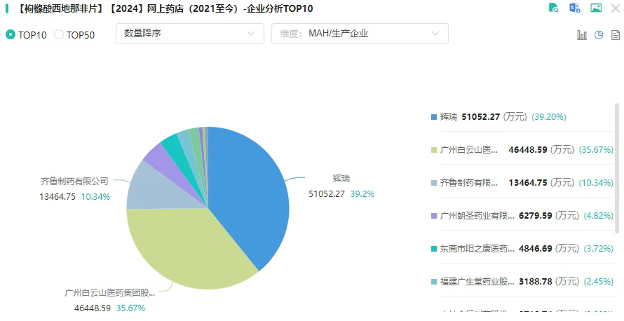摩熵医药数据库显示,2024年中国网上药店销售端的销售额首次突破700亿元大关,2025年第一季度同比增长80.79%。其中2024年TOP10产品中,司美格鲁肽大涨142%,夺得榜首;TOP10生产企业中,本土药企占四席,国药控股星鲨制药、三生蔓迪药业、东阿阿胶、北京同仁堂在列。