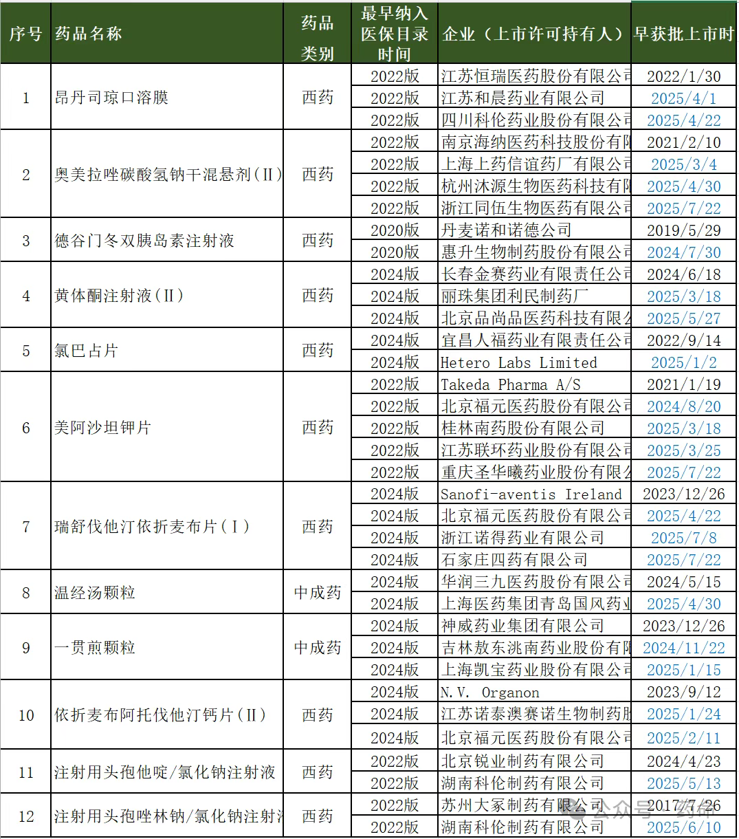 一、12个品种非独家的协议未到期谈判药品即将转常规乙类