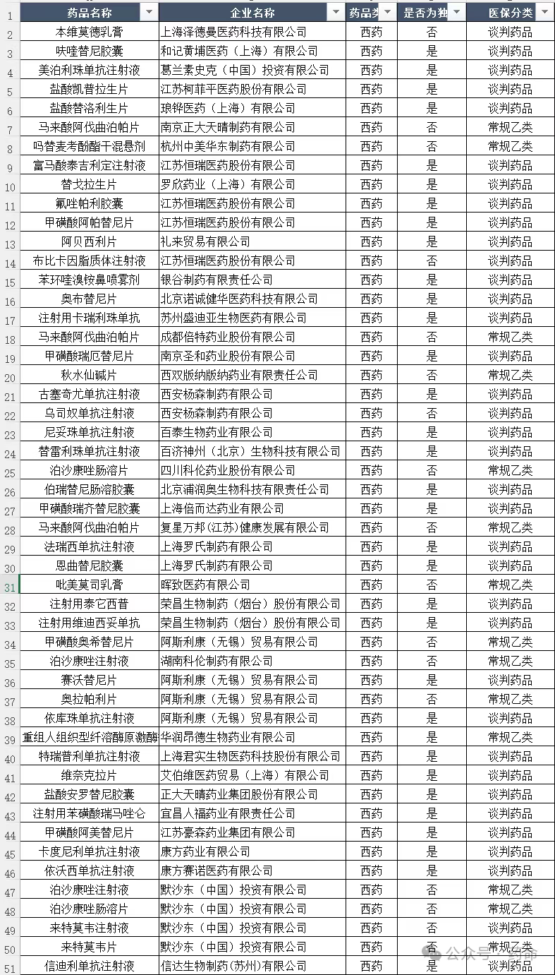 2025国谈分类清晰整理如下: