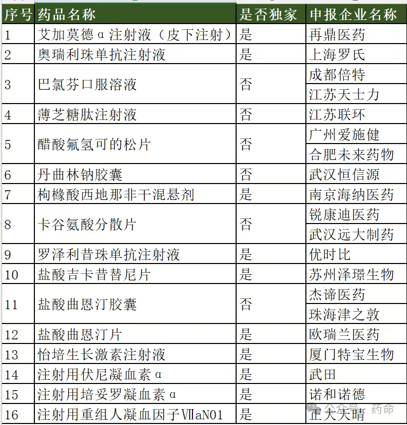 3、仅申报商保创新药目录16个品种
